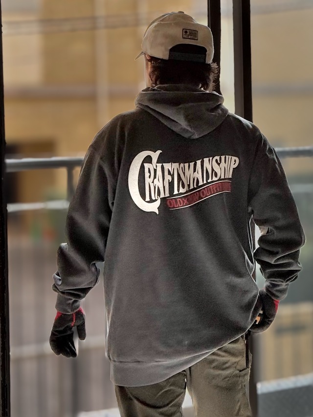 製品染めだから出せる、この独特のムラ感と抜け感。 “CRAFTSMANSHIP”を引き立てる大人のフーディ。 ガーメントダイで後染めしたボディのチャコール色の風合いと素材の質感が味のある一着となっています。 サイズ(cm) S M L XL 身丈 70 72 75 77 身幅 53 58 64 67 裄丈 80 85 90 93 厚さ : 9.5 oz(322g/㎡) 素材: 綿80%/ポリエステル20% 裏起毛