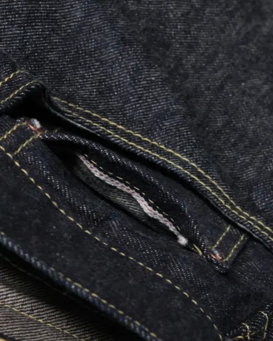 こちらのアイテムは1970年代に国内で初めてデニム専用の糸として開発した精紡機にて糸から拘ったオリジナルファブリックのため、50年前の糸を実現することができます。
