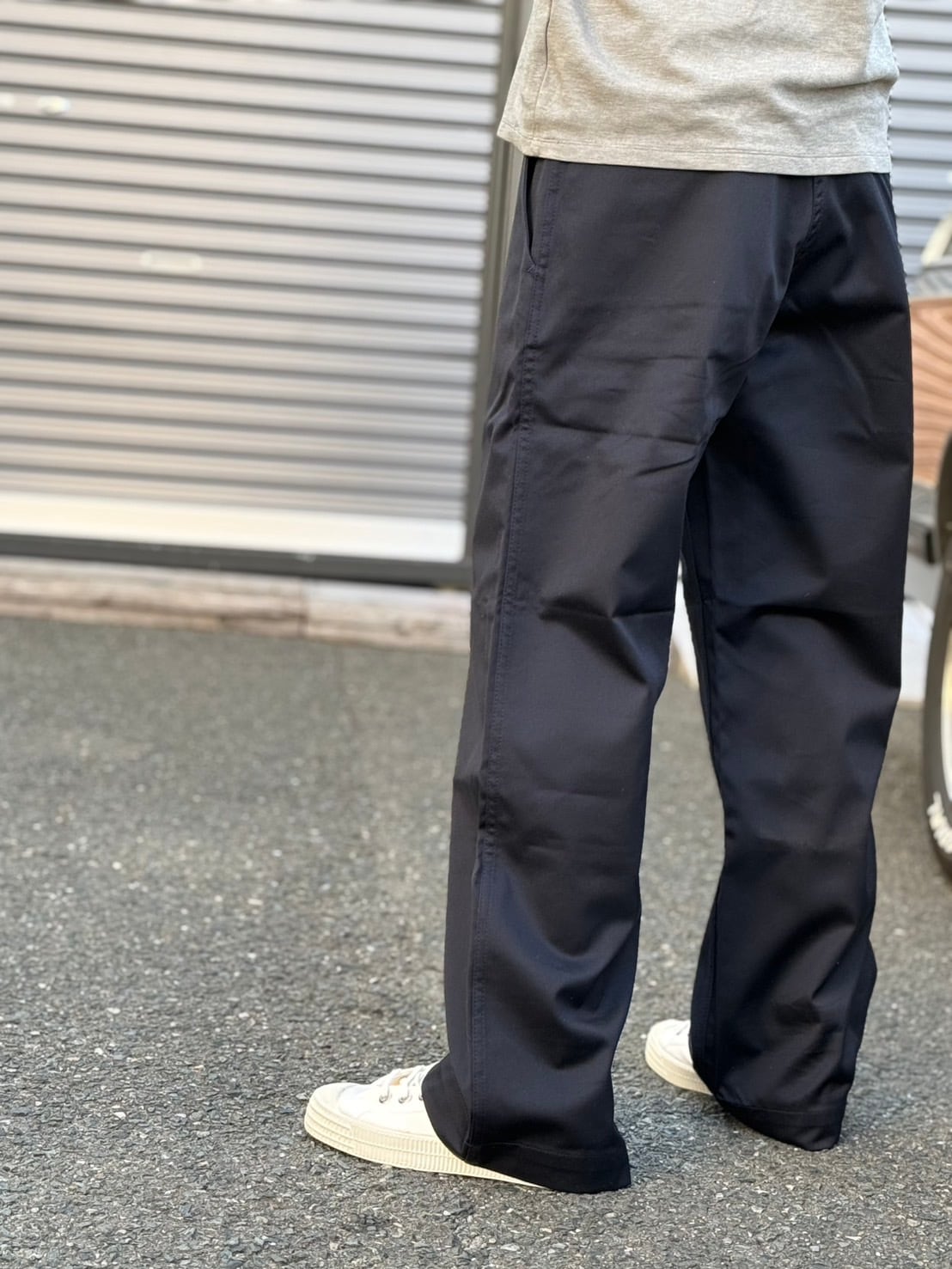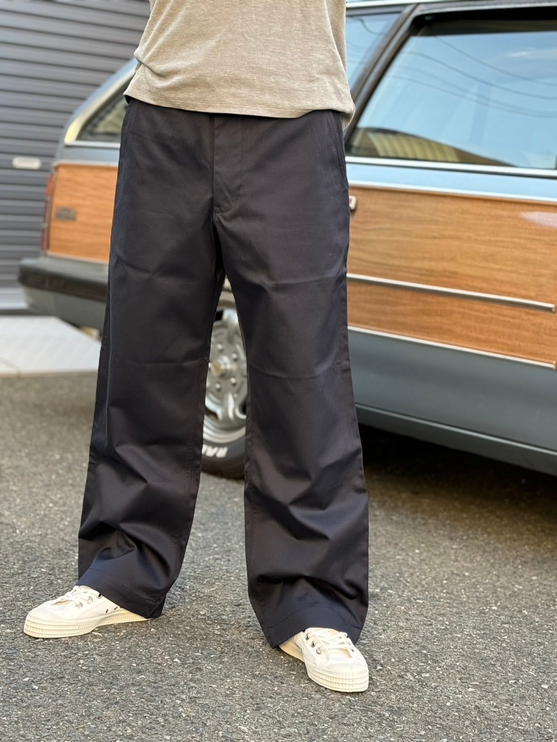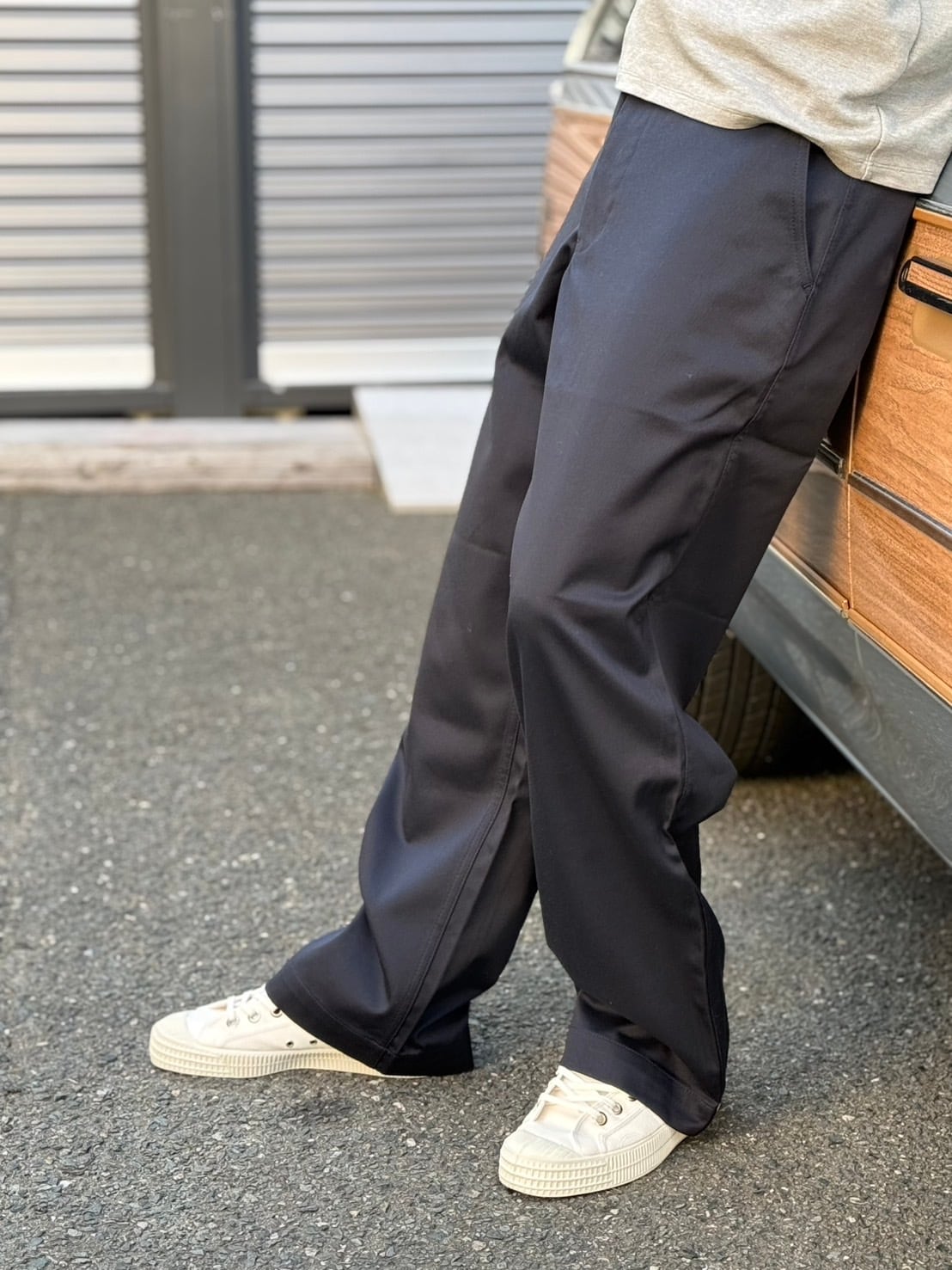 耐久性に優れたT/C素材を採用し、深めの股上とワイドなレッグラインが特徴。がっしりとした佇まいながらも、程よいハリと軽快な穿き心地を兼ね備えています。