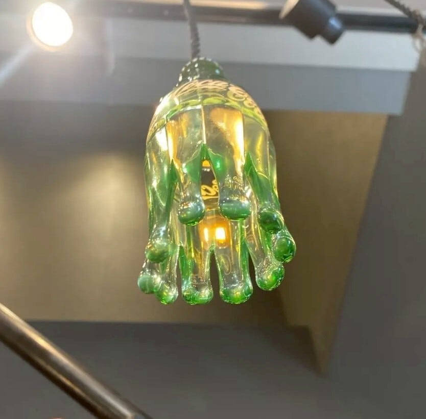 使い終わったビンは埋め立てゴミになってしまう為、「ゴミを減らしてリメイクしたビンを身近に感じてほしい」という想いでランプシェードや食器に生まれ変わらせています。