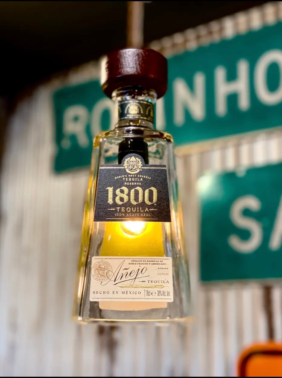 スピリッツテキーラ1800 アネホ空き瓶リメイクランプです。