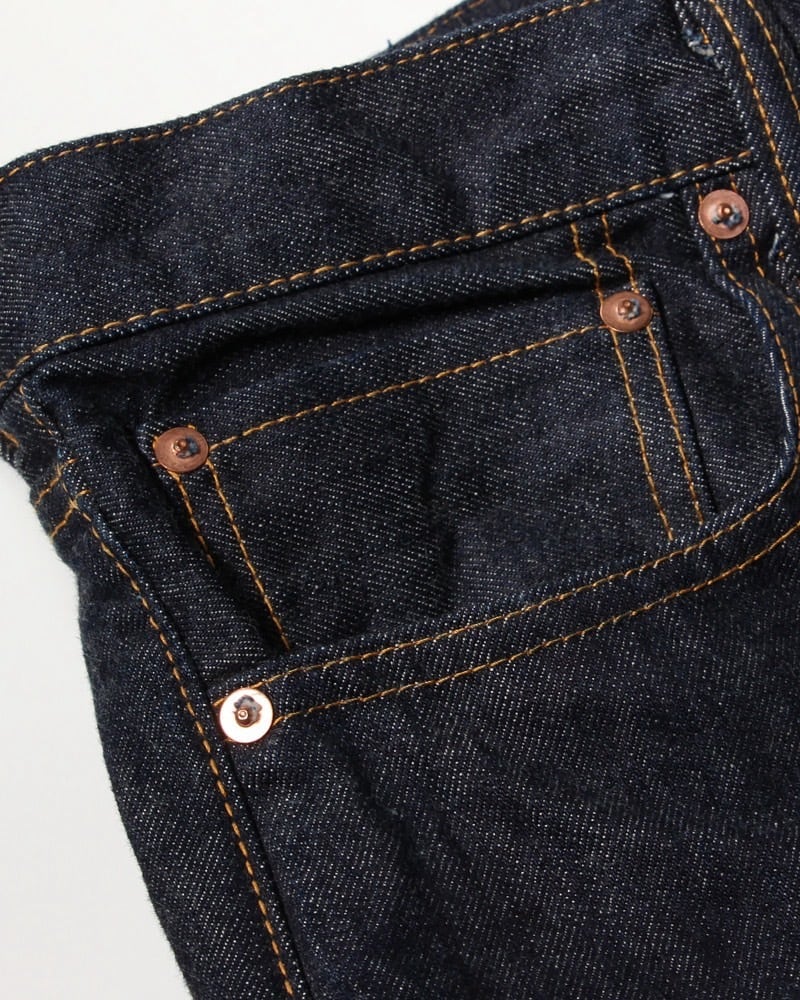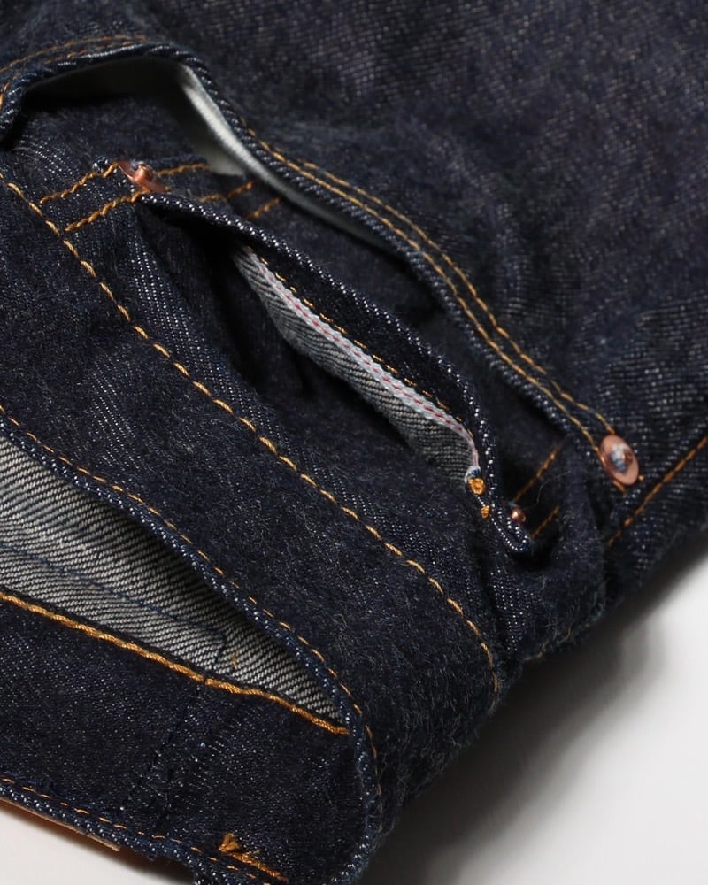 こちらのアイテムは1970年代に国内で初めてデニム専用の糸として開発した精紡機にて糸から拘ったオリジナルファブリックのため、50年前の糸を実現することができます。