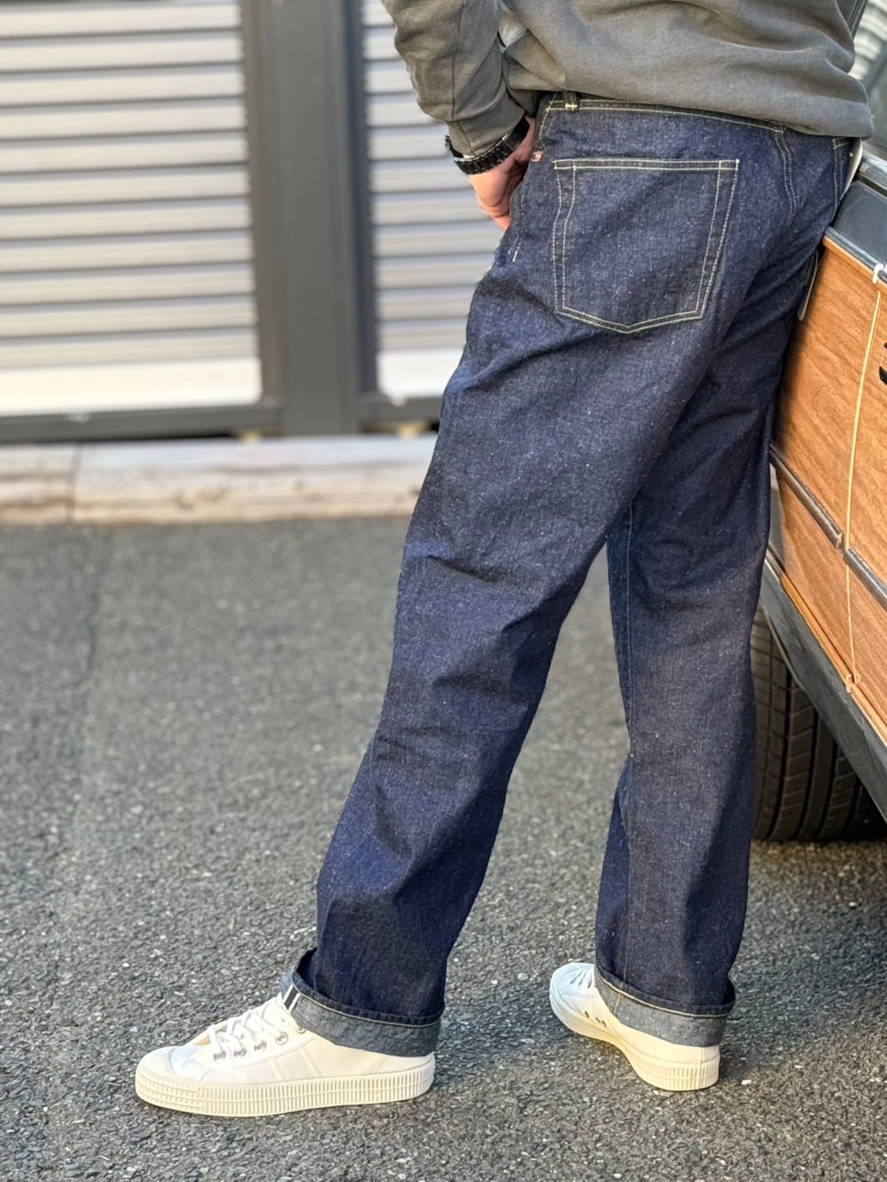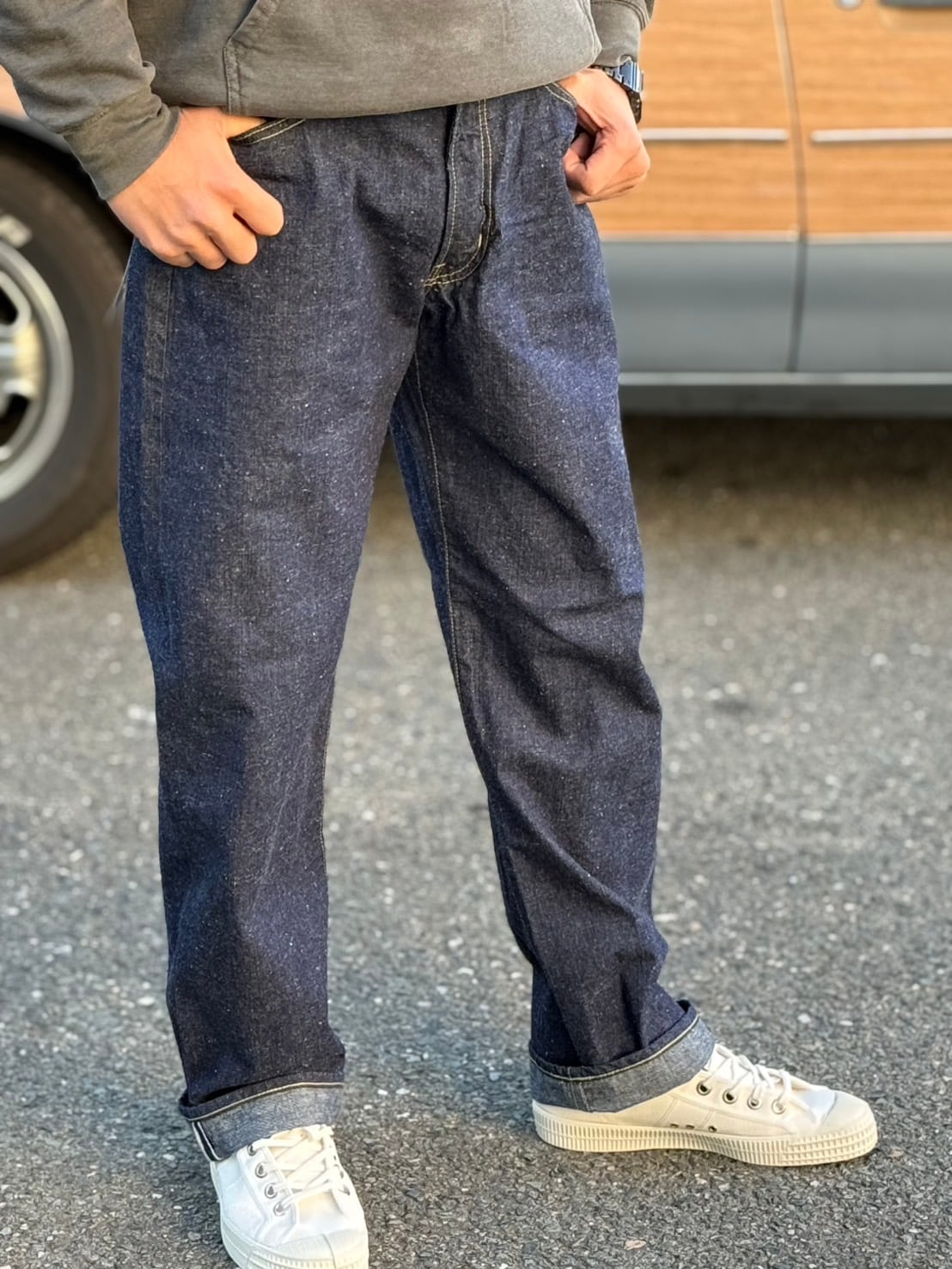 うっすらとインディゴデニムにちりばめられたネップが独特な風合いのネップデニム『SMALL LUMP』を使用。12ozという絶妙な厚みは、重すぎず軽すぎず、一年を通して快適に穿けるバランスです。
