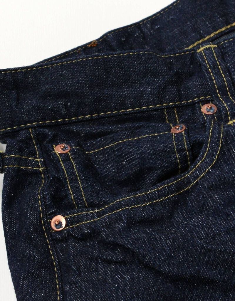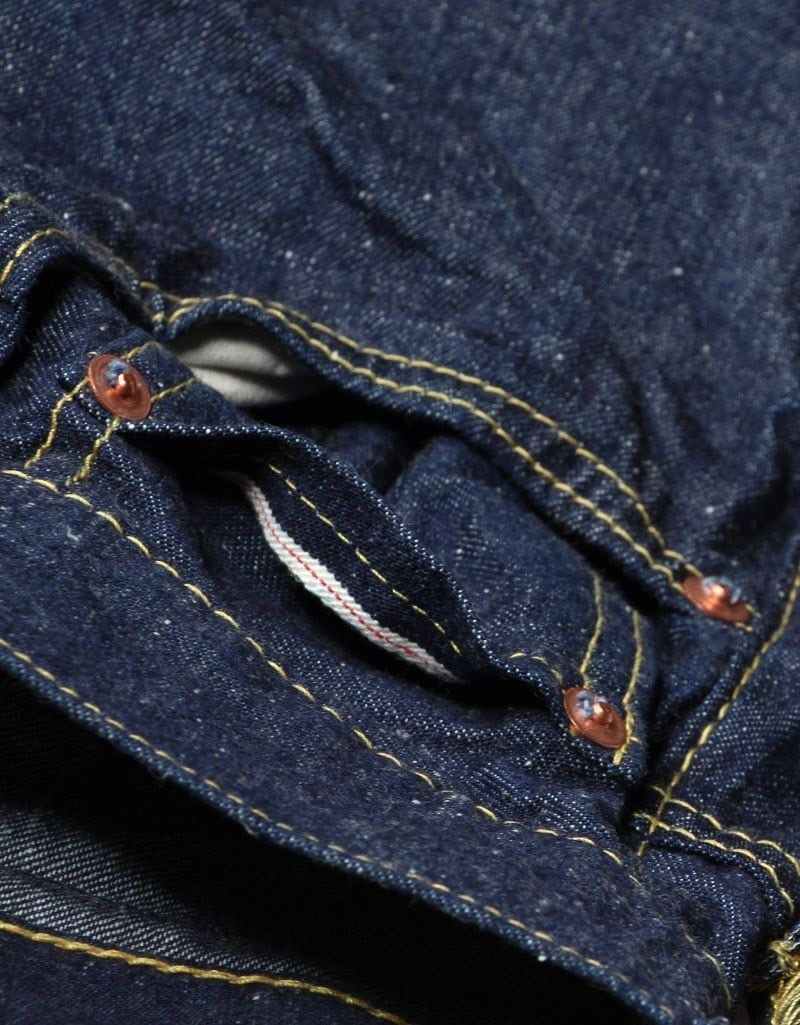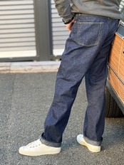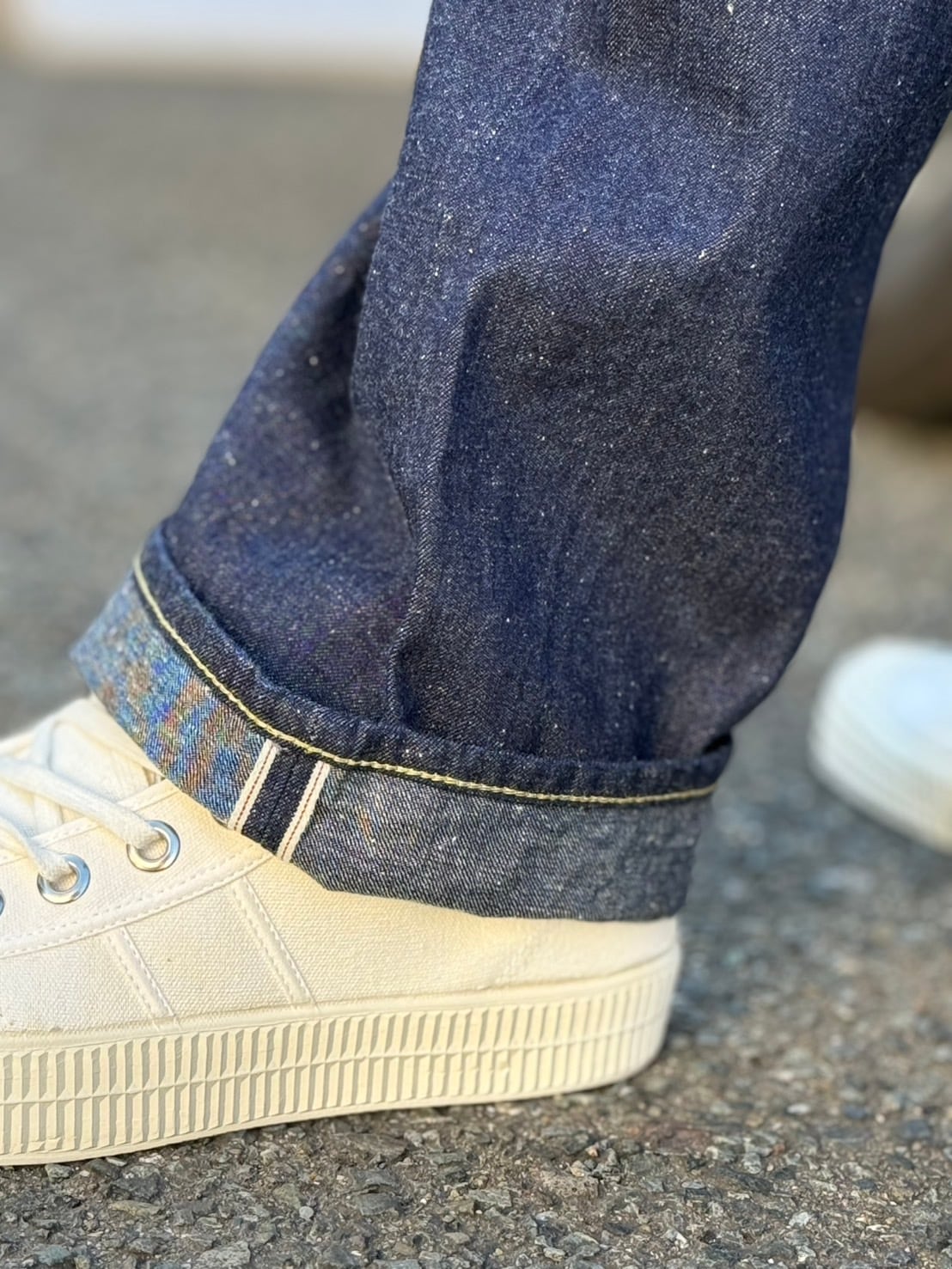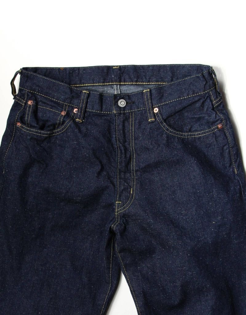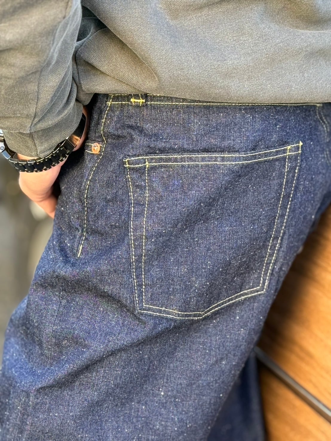 実用的で使いやすいフロントジップフライはクラシカルな雰囲気を演出するユニバーサルジッパーを採用。インディゴの濃淡にちりばめられたネップが、ワークウェアを彷彿とさせる独自の表情を生み出し、通常デニムでは味わえないテイスト。