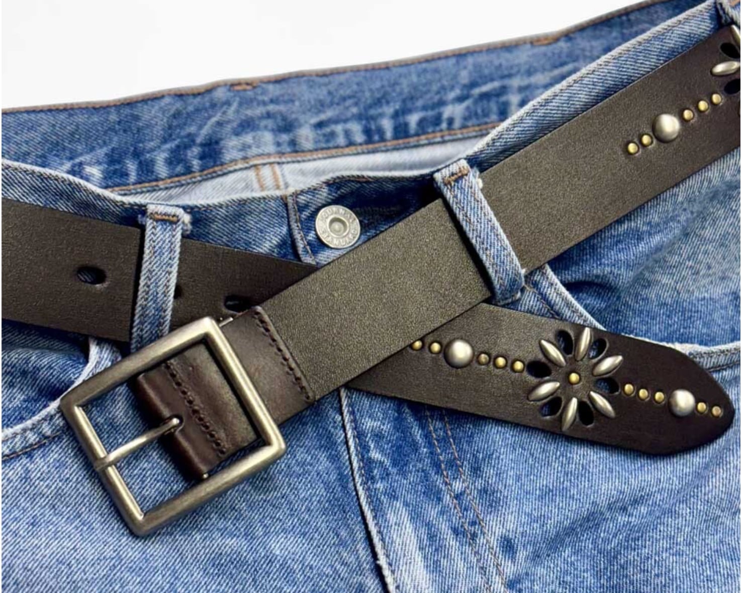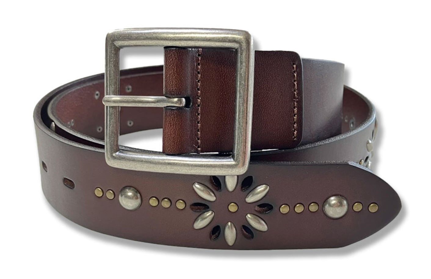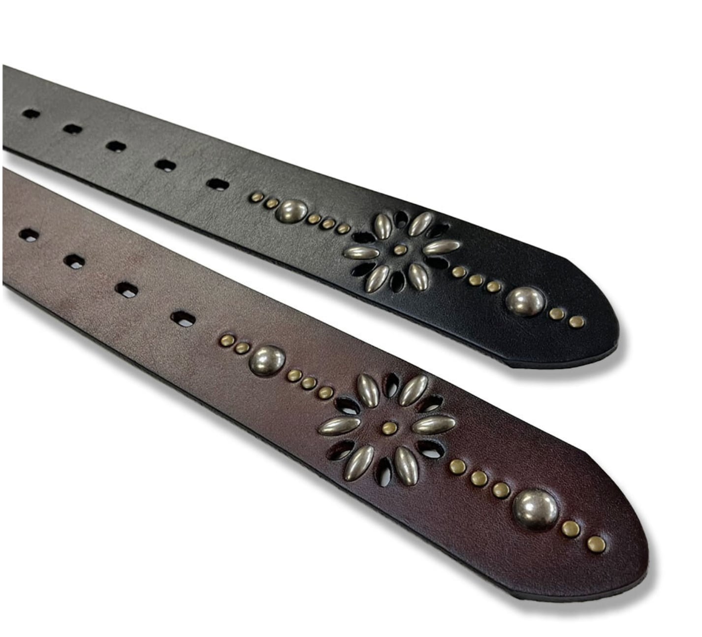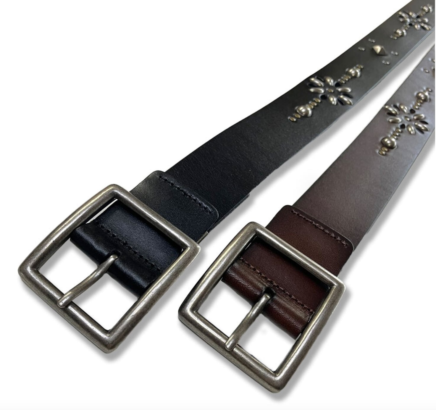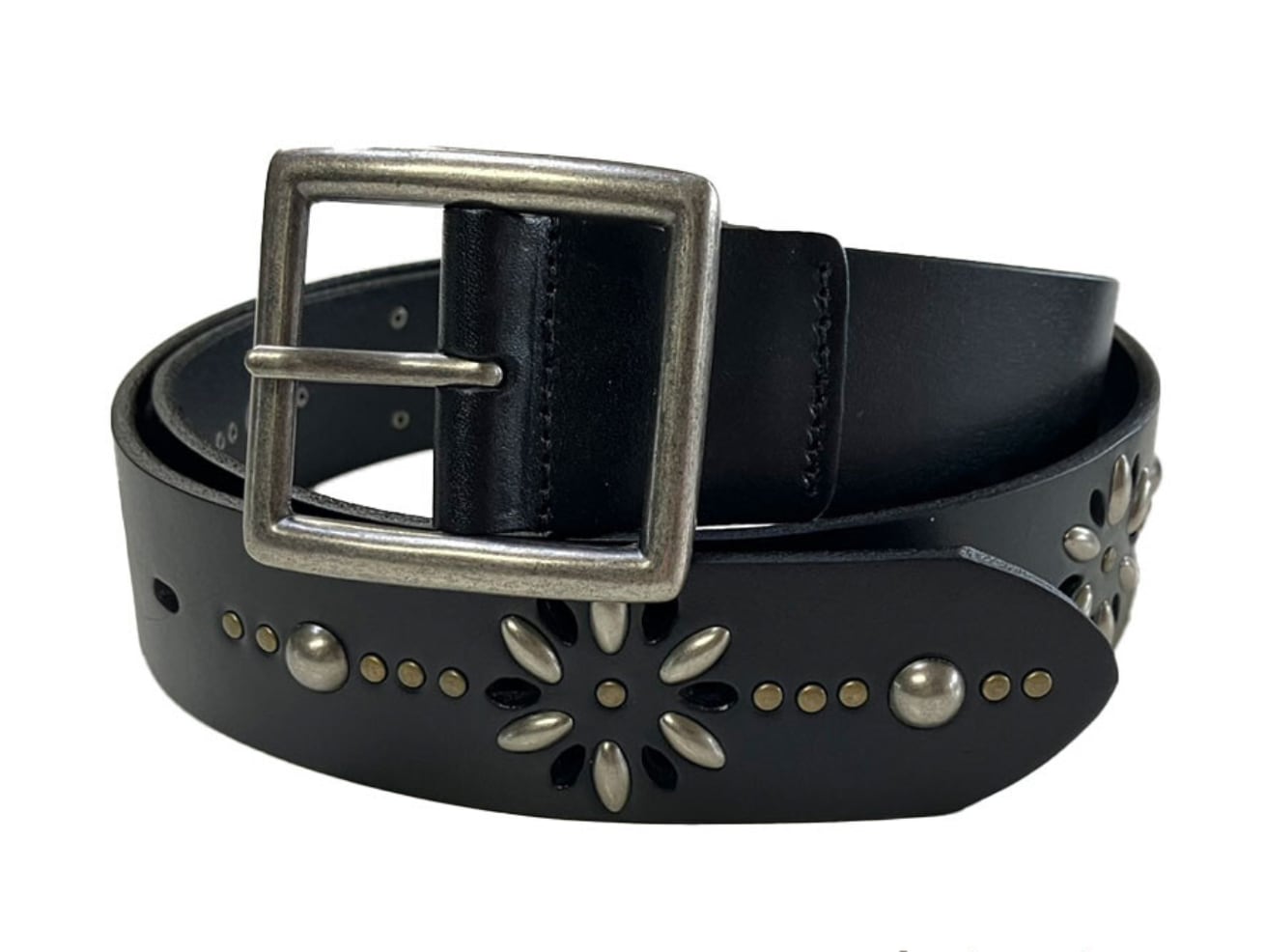 ベルト全体に施されたスタッズが存在感を放ち、フッションのアクセントに!