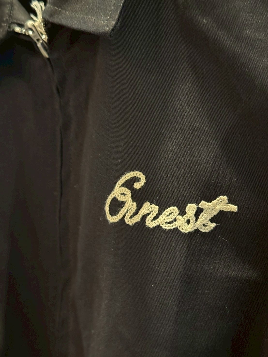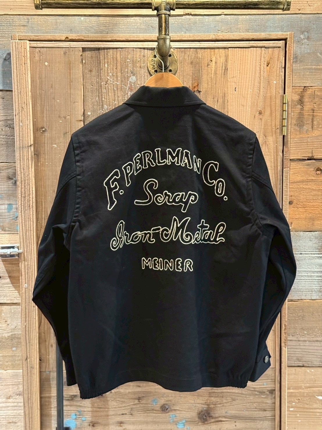 肉厚で丈夫なコットンツイル生地を使用した刺繍ハリントンジャケット。50年代のカークラブジャケット風な柄を、クラシックな見た目のチェーン刺繍で仕上げています。