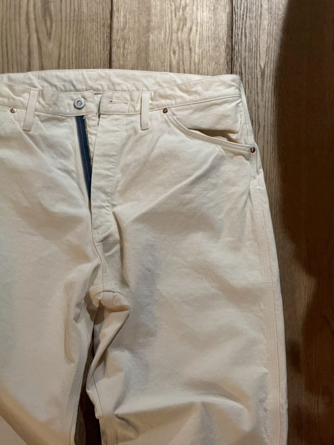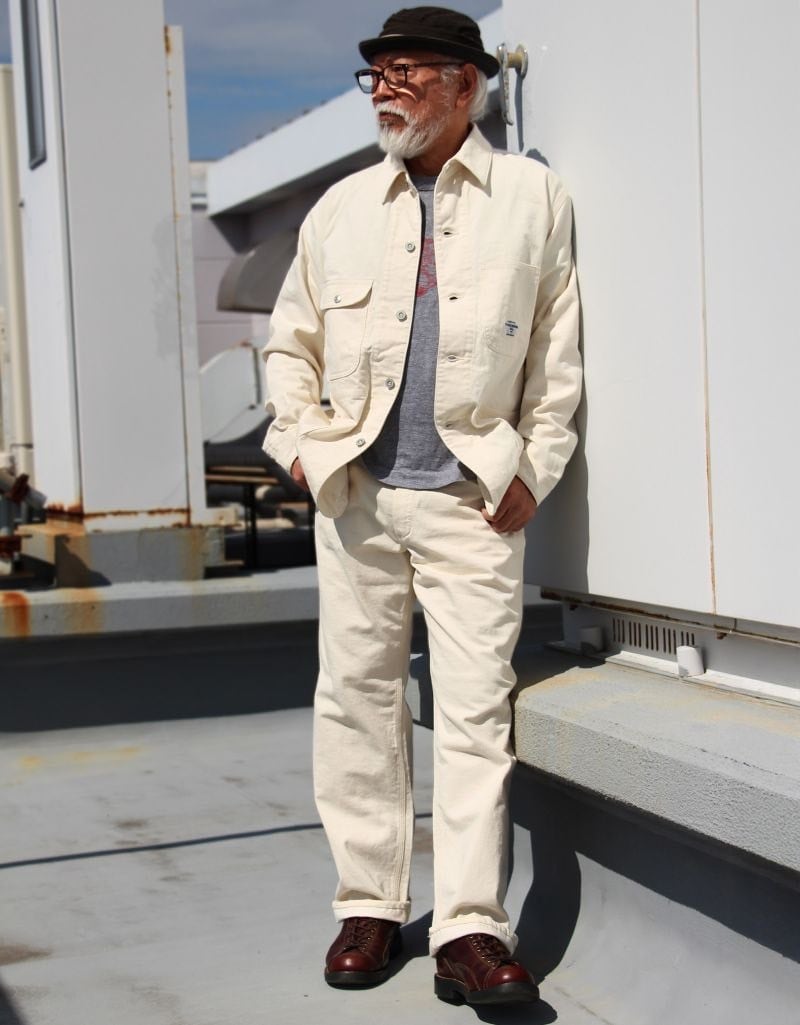 生地は備後地区でも指折りのデニムメーカーが生産した12オンス程度のブロークンツイルで摩擦堅牢度も高く、ワークウェアとしての機能もありつつナチュラルな色合いがヴィンテージっぽさも醸し出している国産ならではの良質な生地です。
