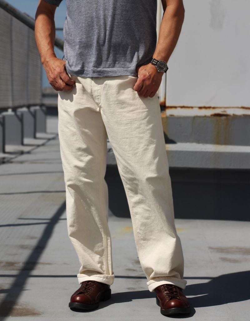 コットンコーデュラを使用したワークパンツ。