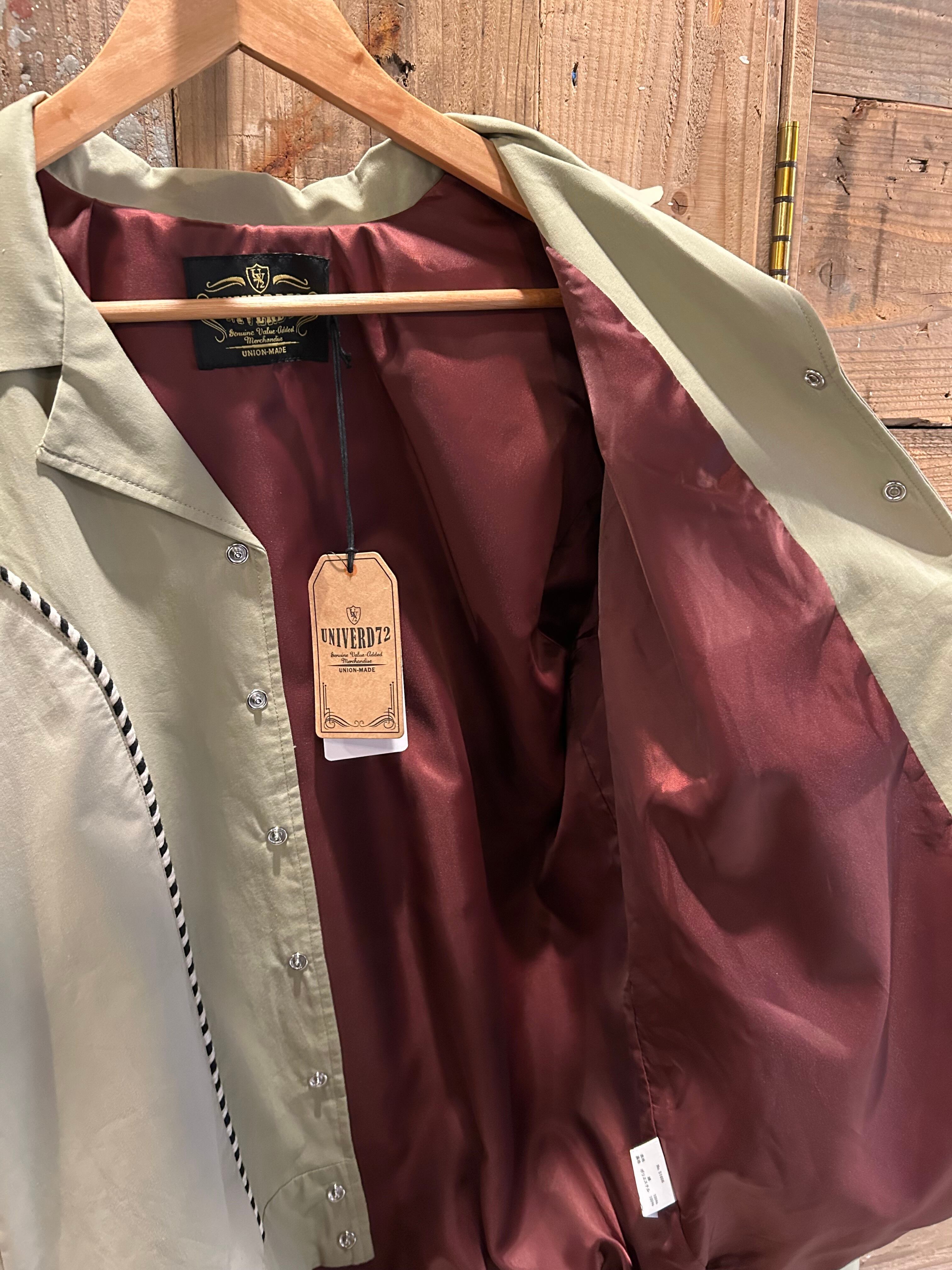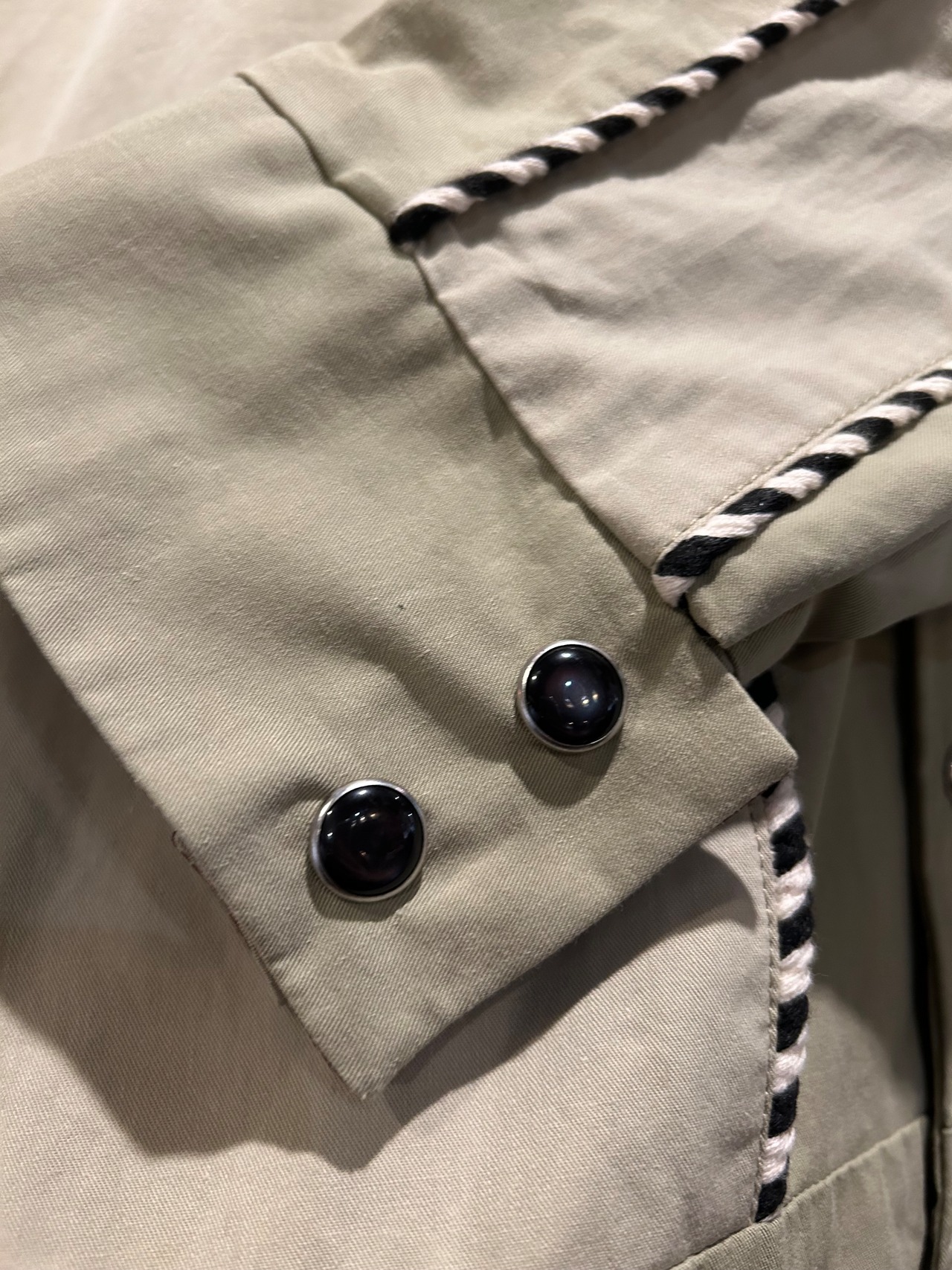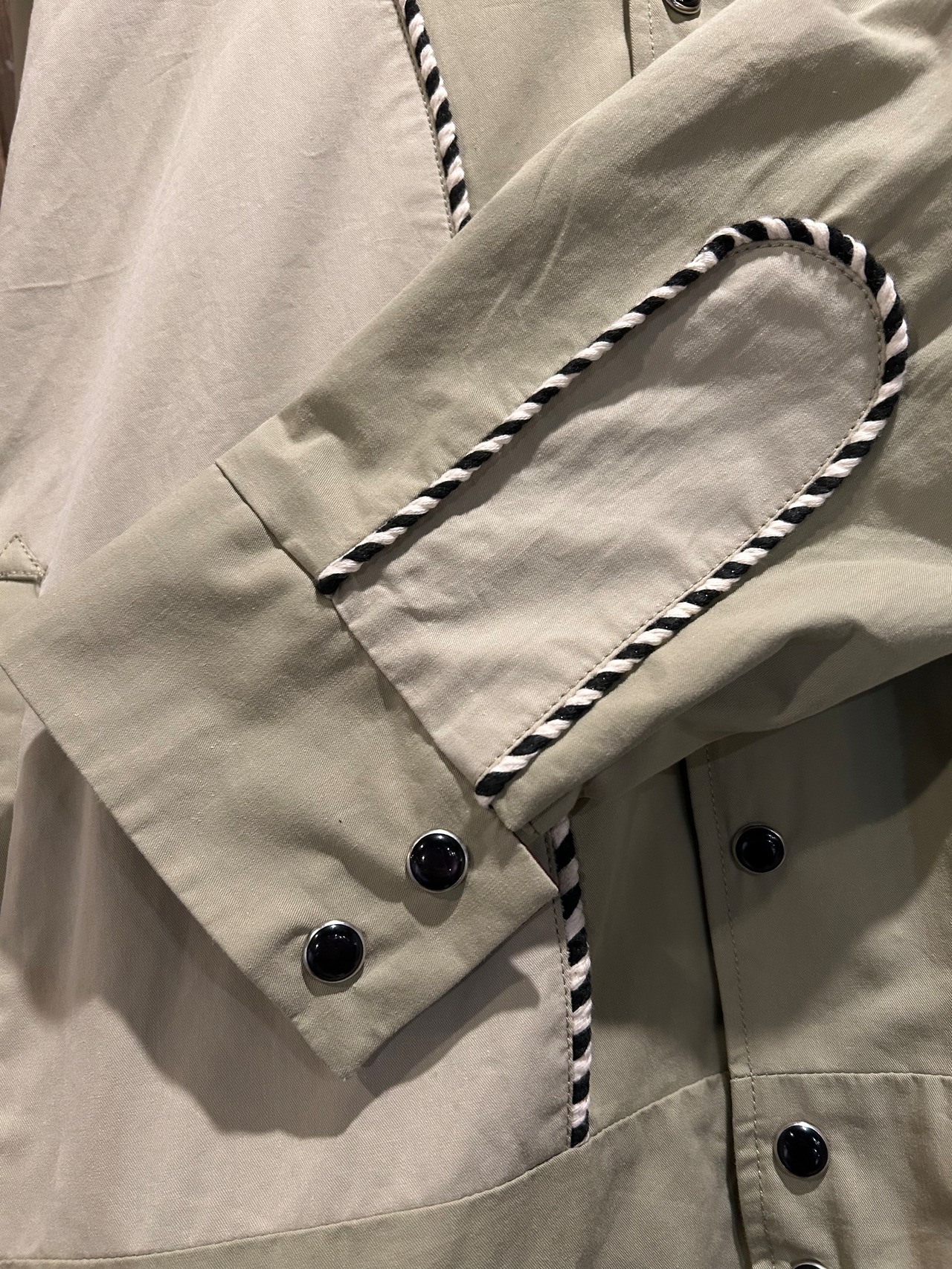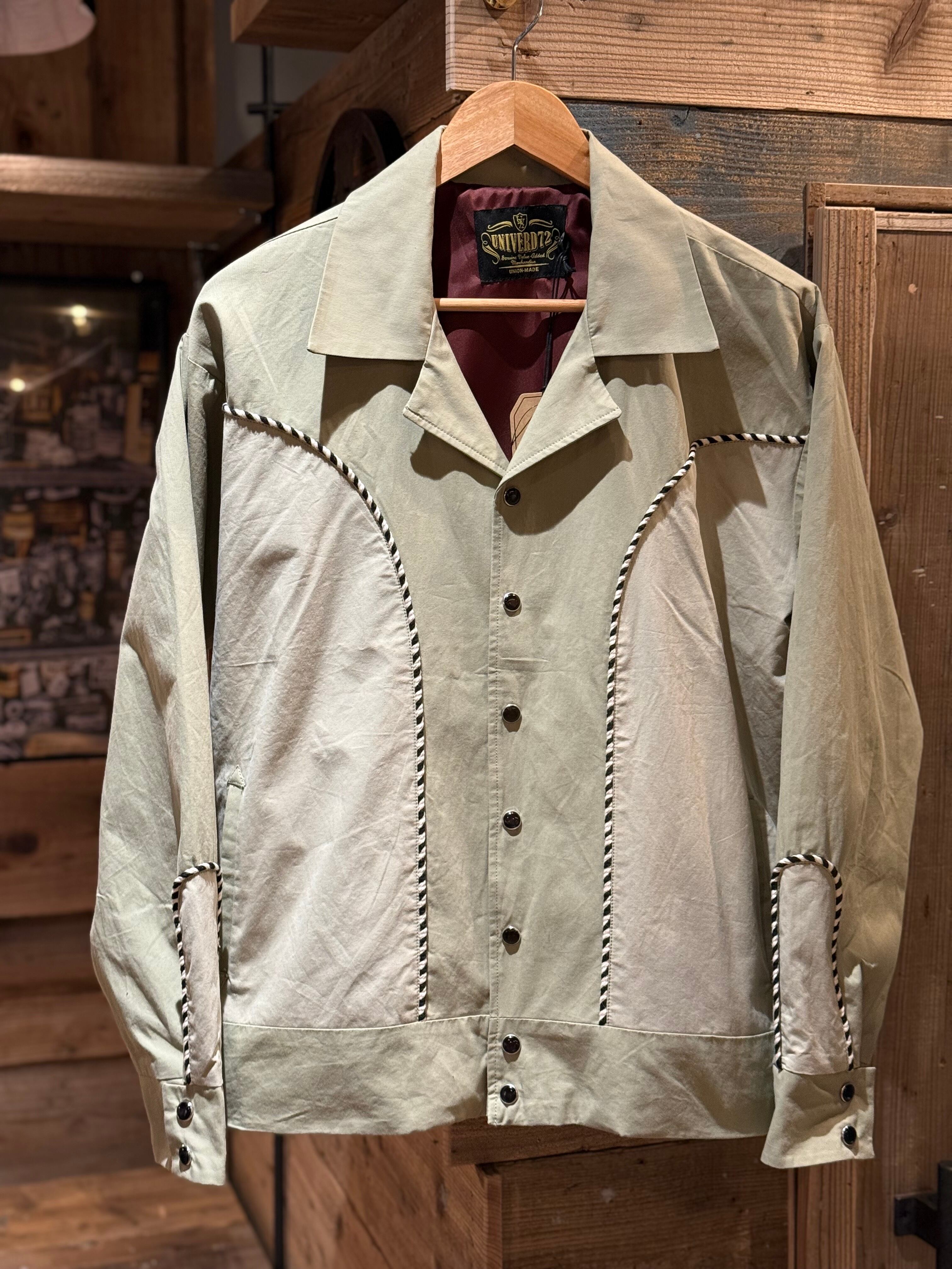 着心地の良いコットンツイル素材を使用したウエスタンジャケット。配色使いの見頃にパイピングを施したデザインがシンプルかつレトロなアイテム。