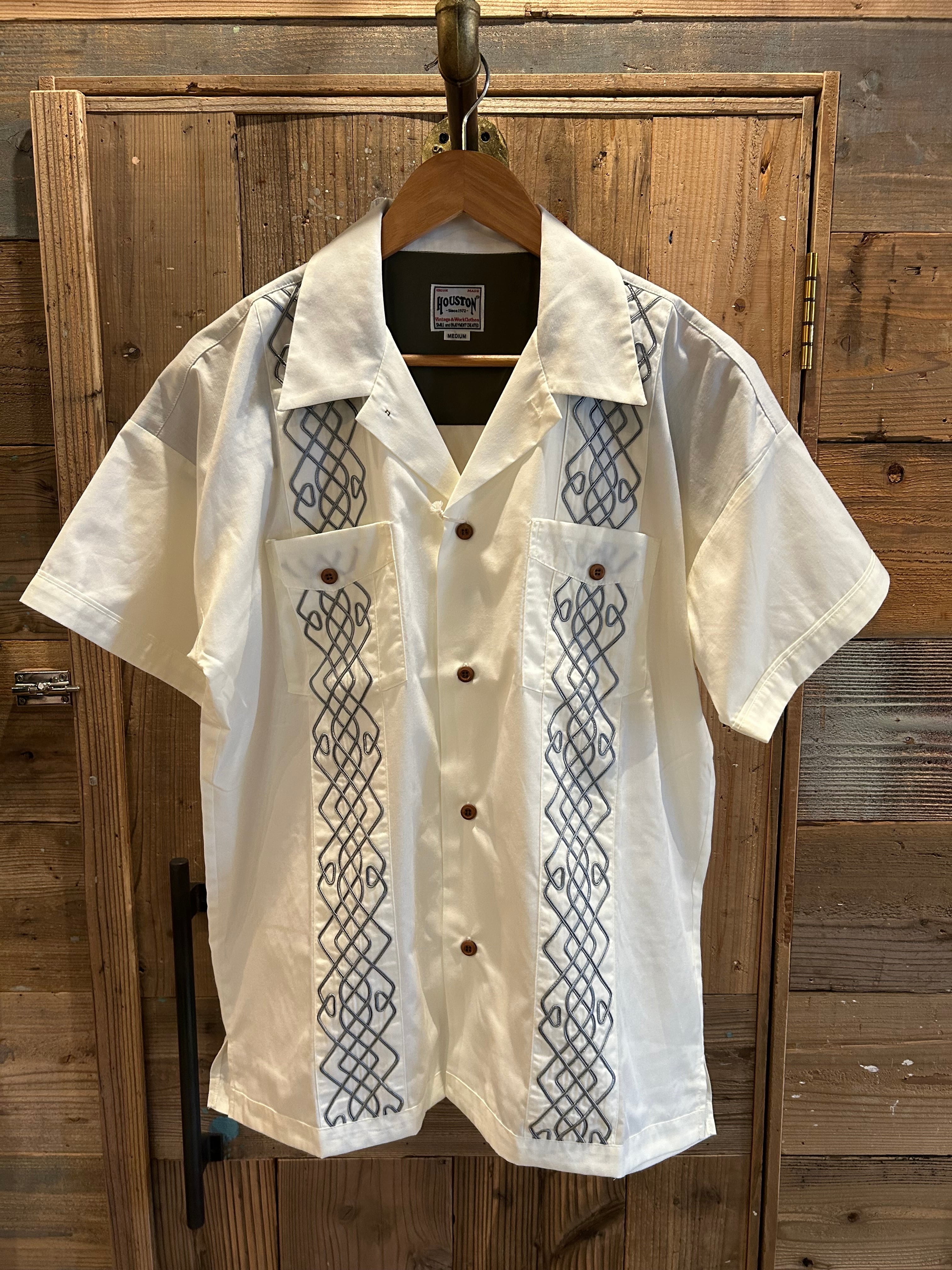 HOUSTONならではのコード刺繍オープンカラーシャツ。