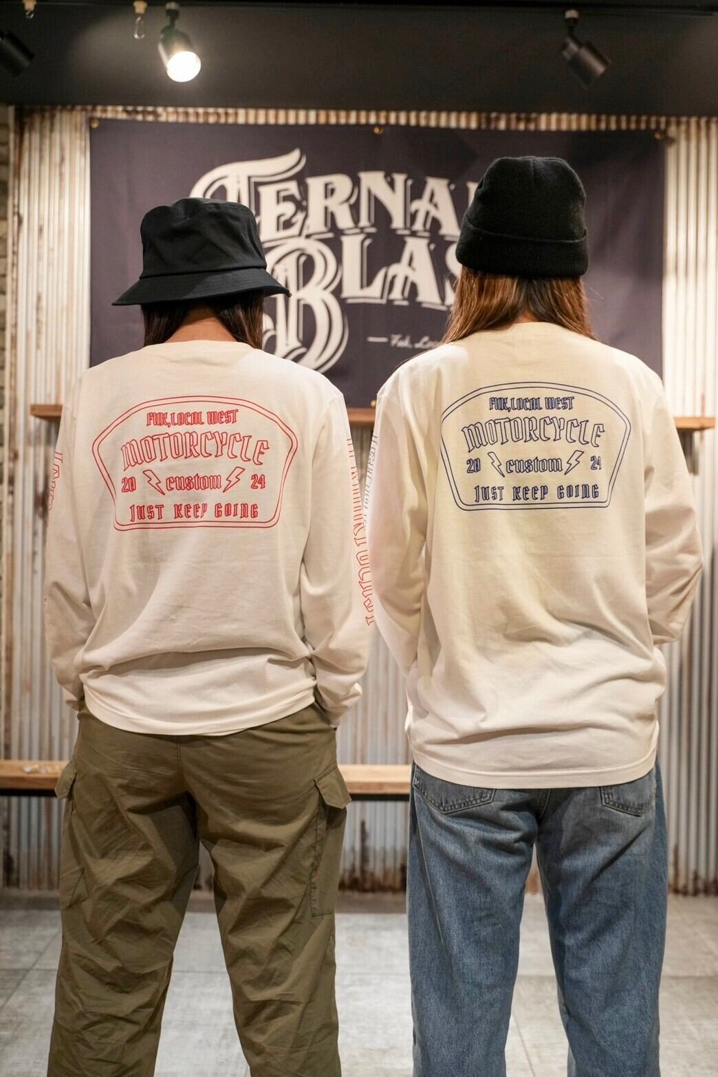 バックとフロントにはTBロゴ、腕周りにはTERNARY BLASTの文字を入れ、バイクシーンにはもちろん普段使いもできるデザインに◎