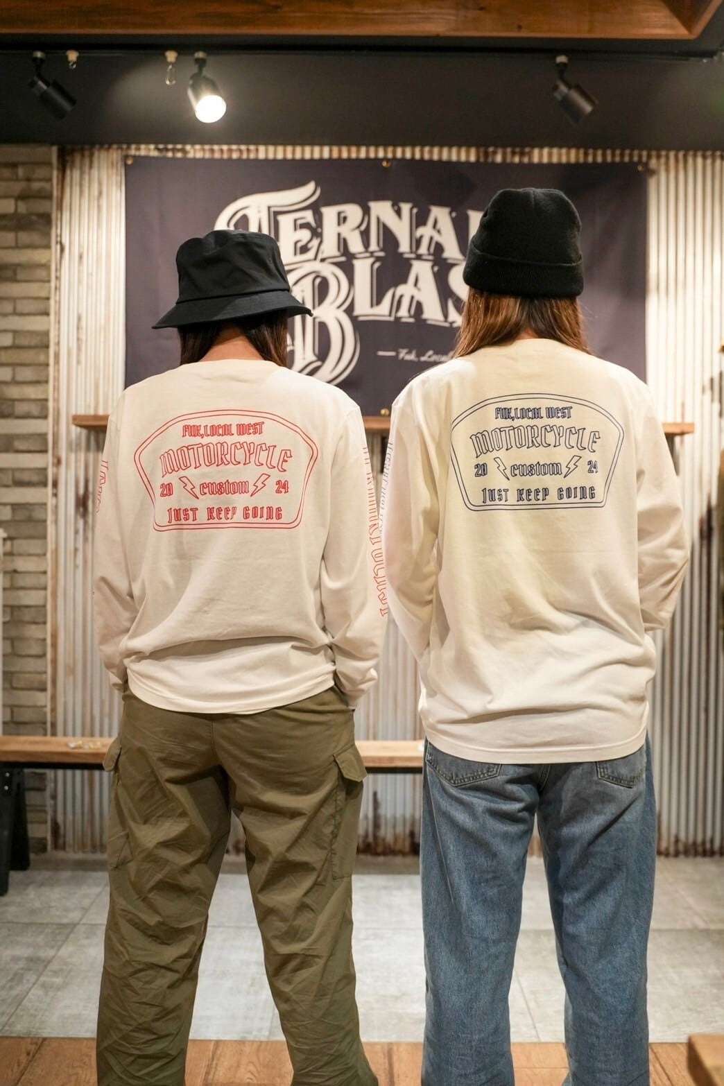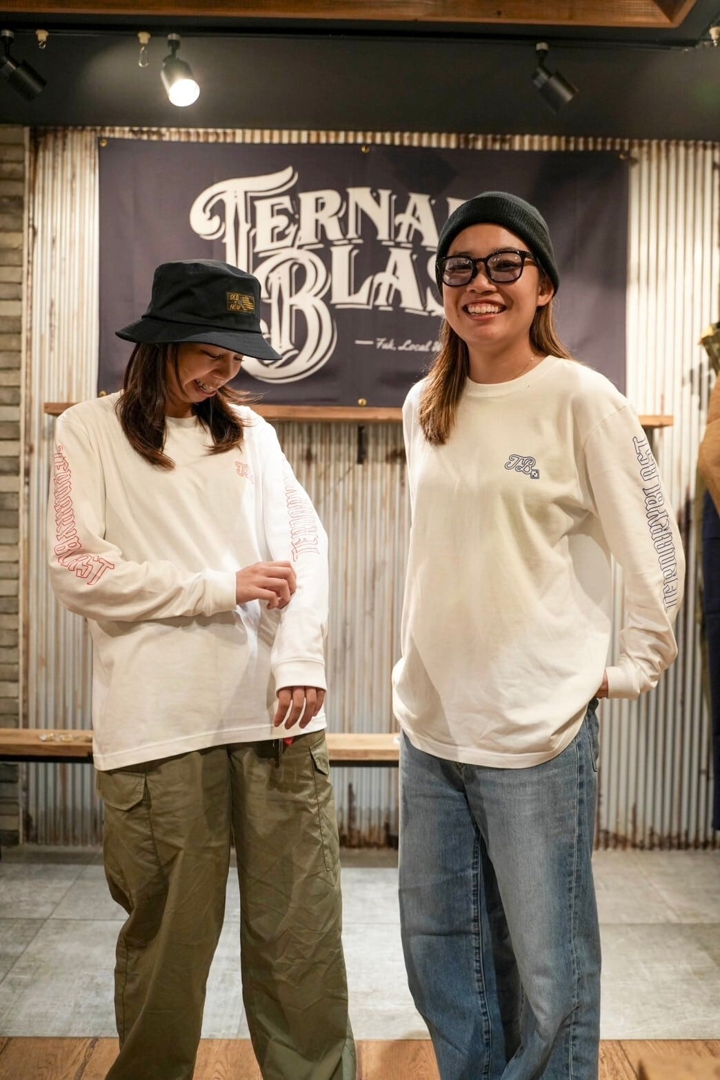 バックとフロントにはTBロゴ、腕周りにはTERNARY BLASTの文字を入れ、バイクシーンにはもちろん普段使いもできるデザインに◎